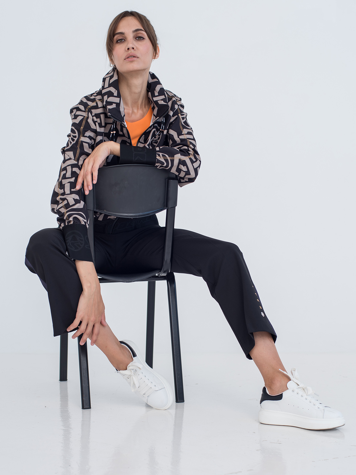Женская олимпийка SPORTALM c оригинальным принтом по всей поверхности изделия. Воротник стойка, застежка на молнию, длинные втачные рукава с эластичным манжетами. Олимпийка дополнит образы в спортивном или повседневном городском стиле.