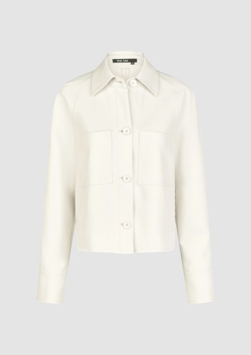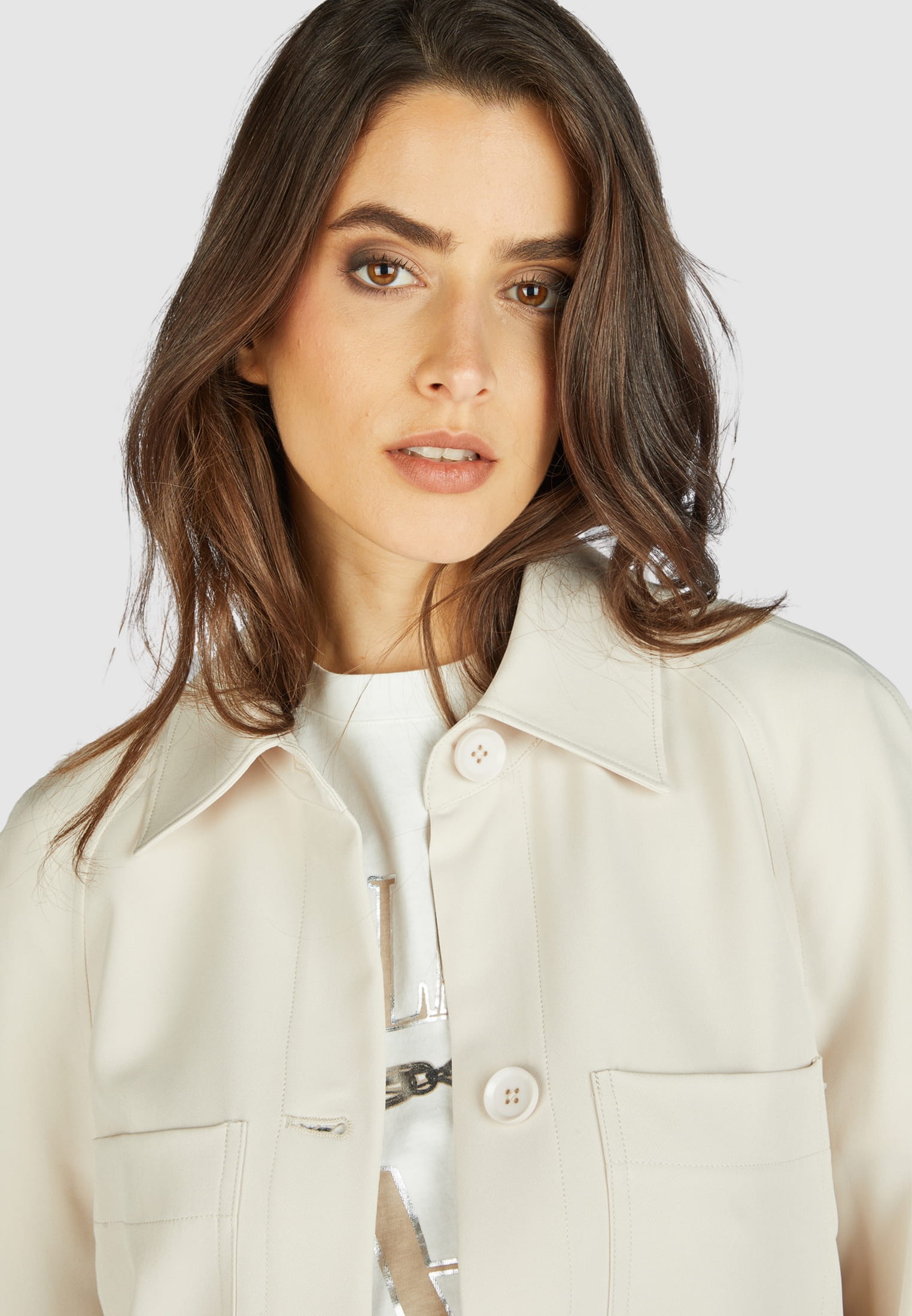 Элегантная куртка-рубашка из мягкой, легкой в уходе ткани. Воротник рубашки и накладные нагрудные карманы придают повседневному H-образному силуэту четкую структуру. Классическая планка на пуговицах и манжеты с разрезами подчеркивают прямой дизайн.