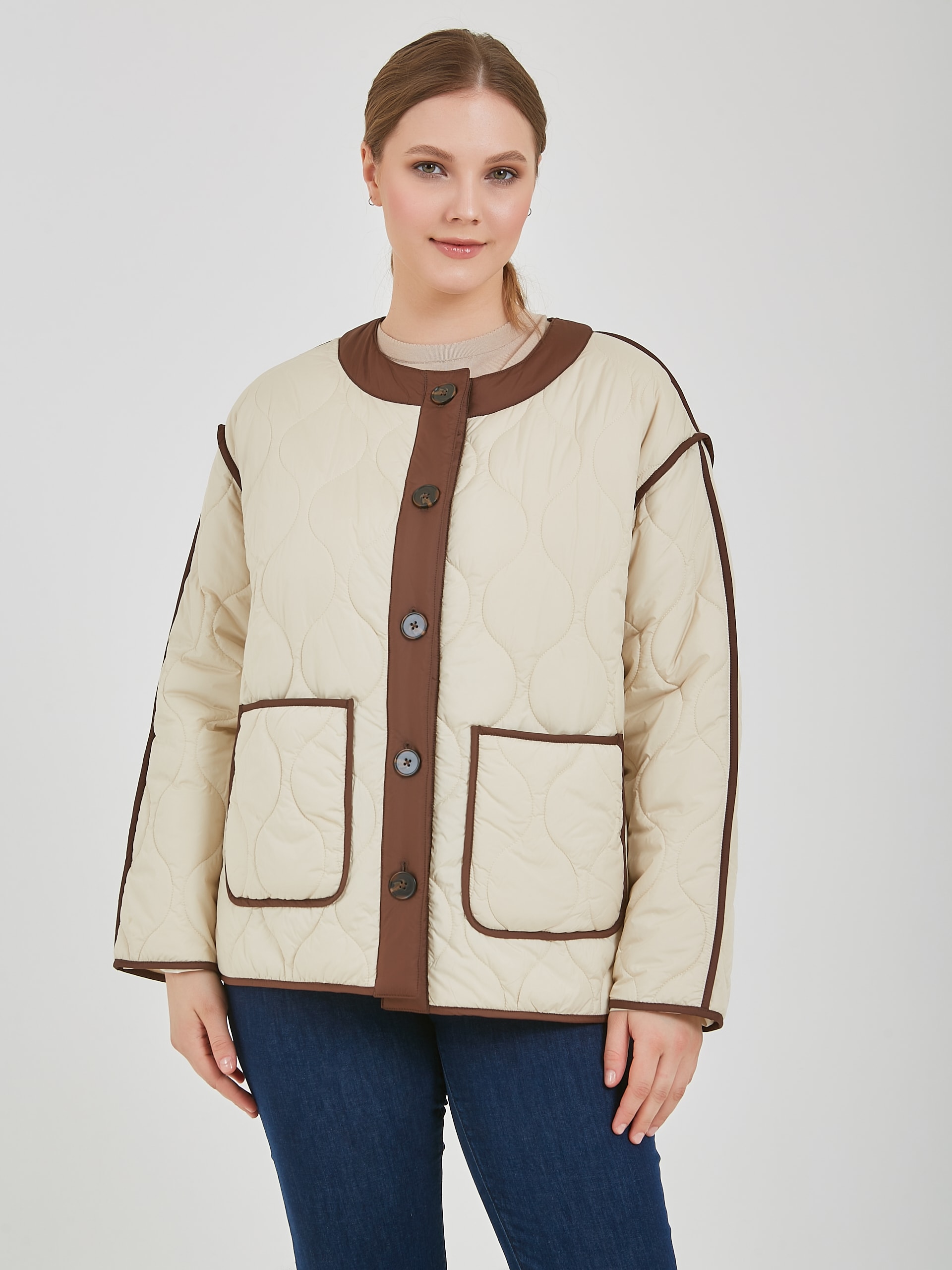 Женская утепленная куртка подарит тепло в прохладные дни. Женская куртка на пуговицах имеет удобный крой, стильный дизайн и практичность, который подходит для создания повседневных образов. Коллекция Весна-Лето 2025. Капсула "Рио де Жанейро". Параметры модели: 95-64-101, рост 175, размер 44-46