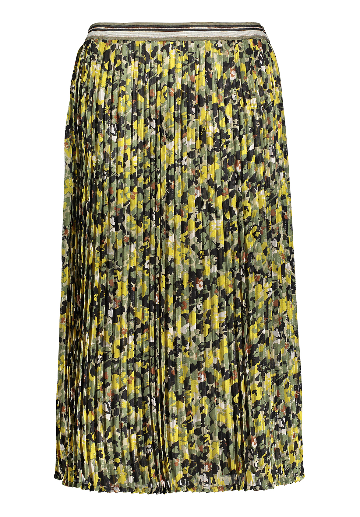 Плиссированная юбка миди - звезда модных подиумов! Принт с цветочными мотивами подчеркивает женственность обладательницы юбки. Завершает модный дизайн эластичный пояс с блестящей нитью люрекса.