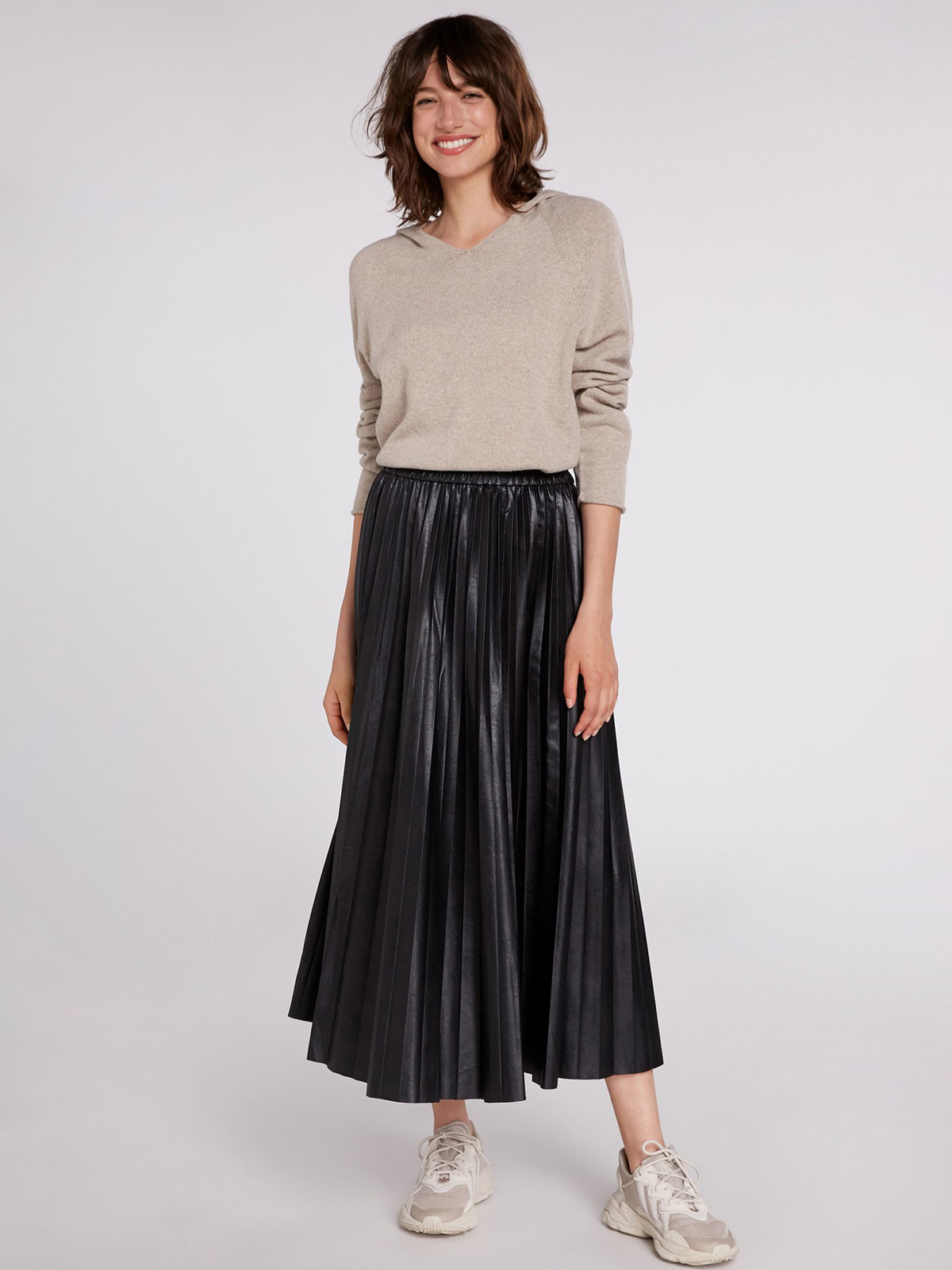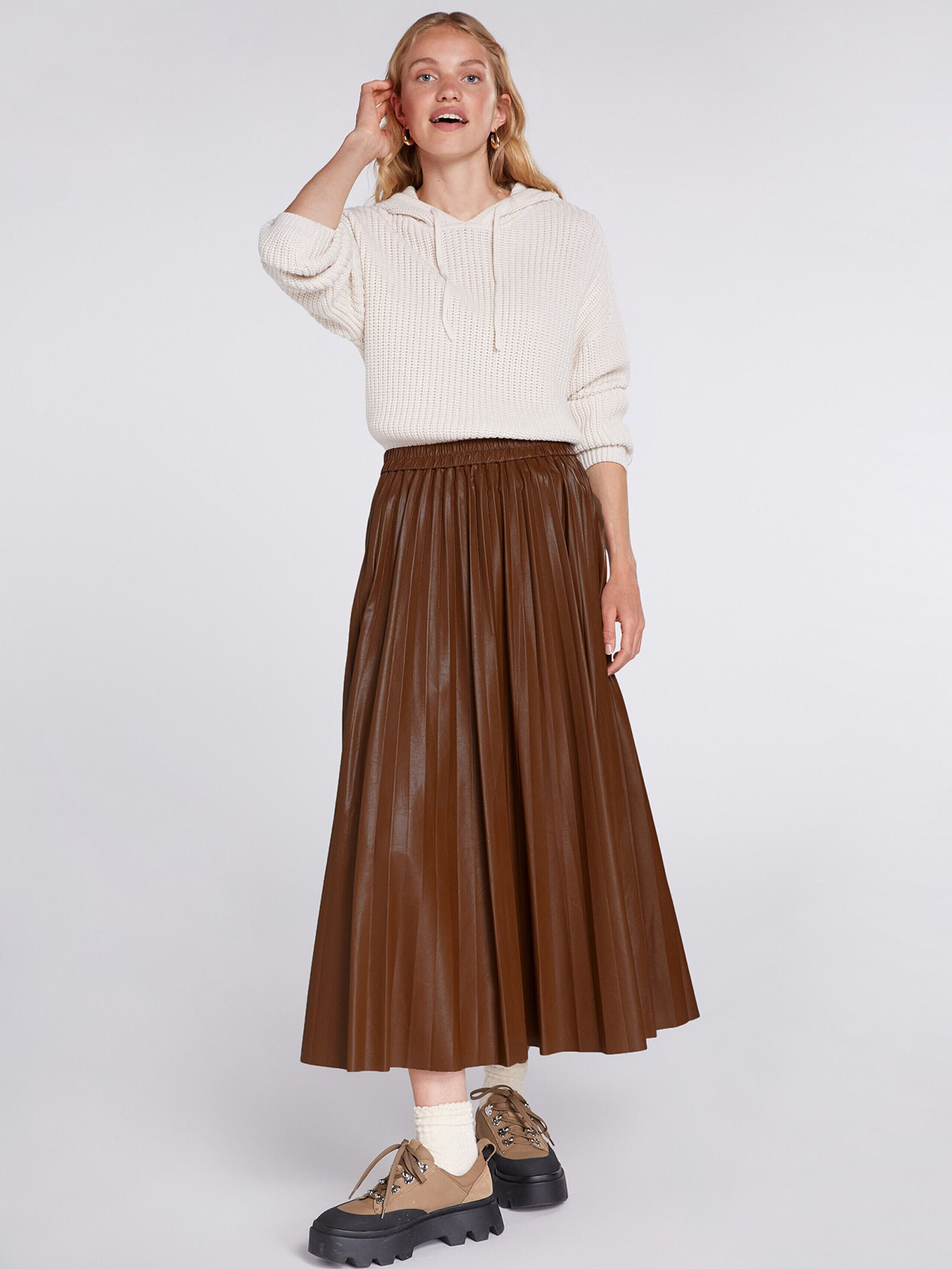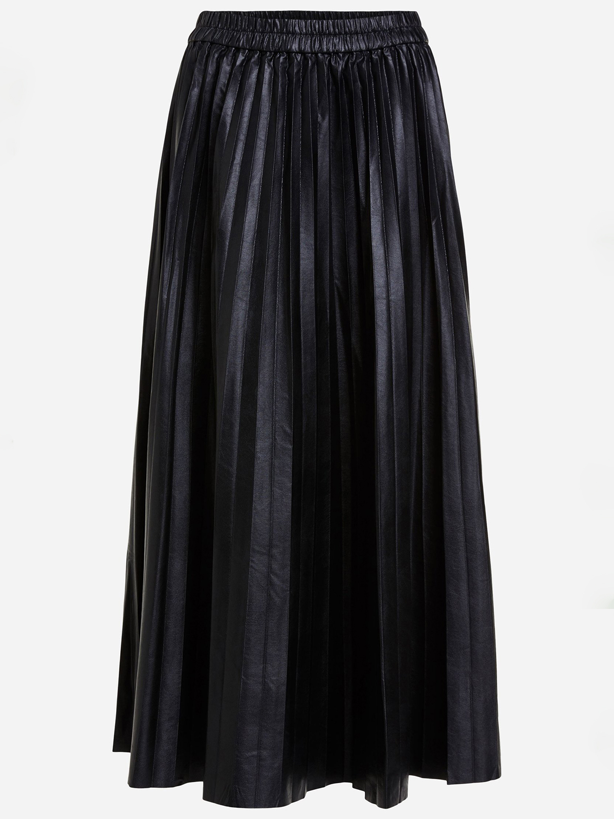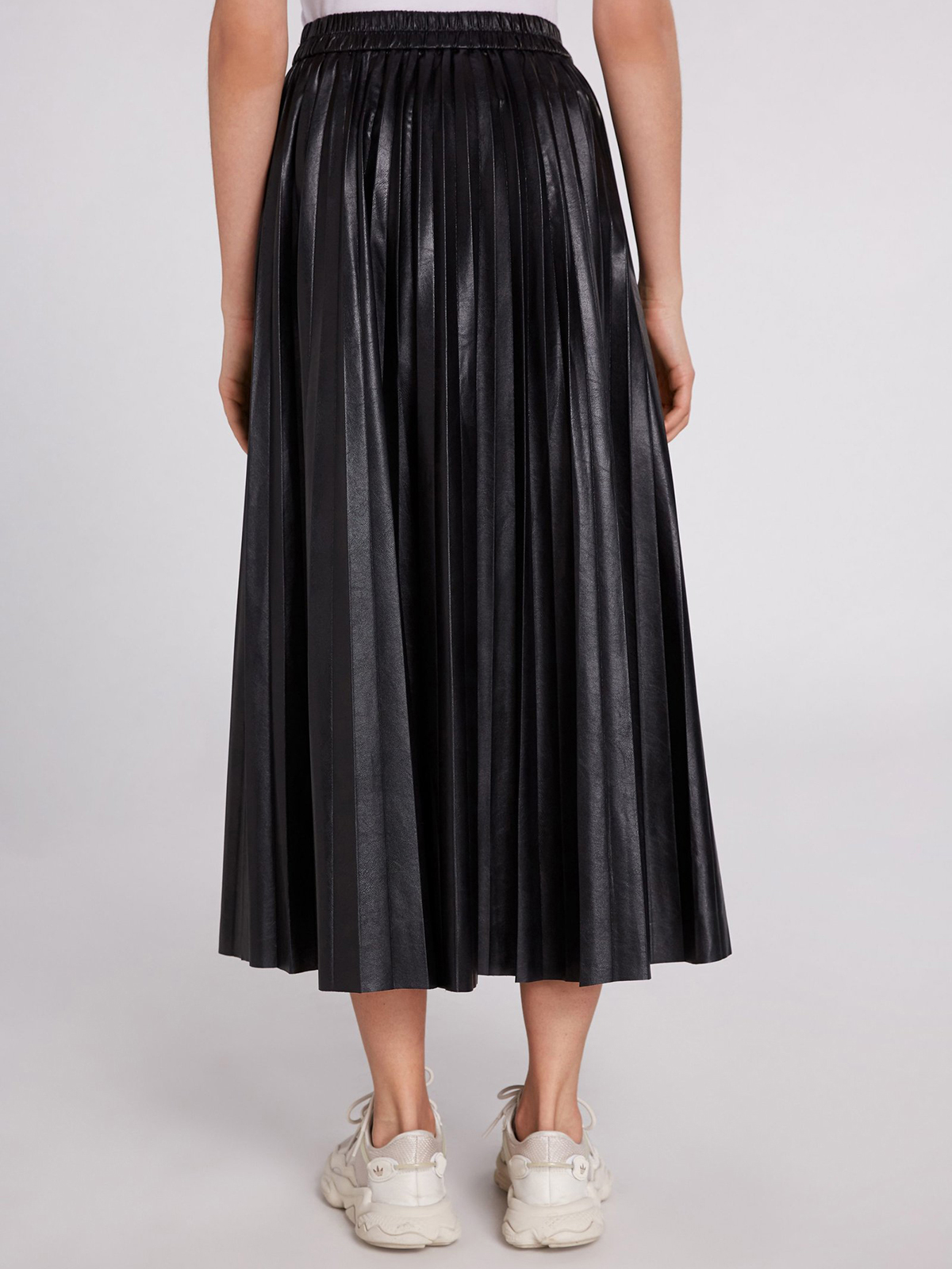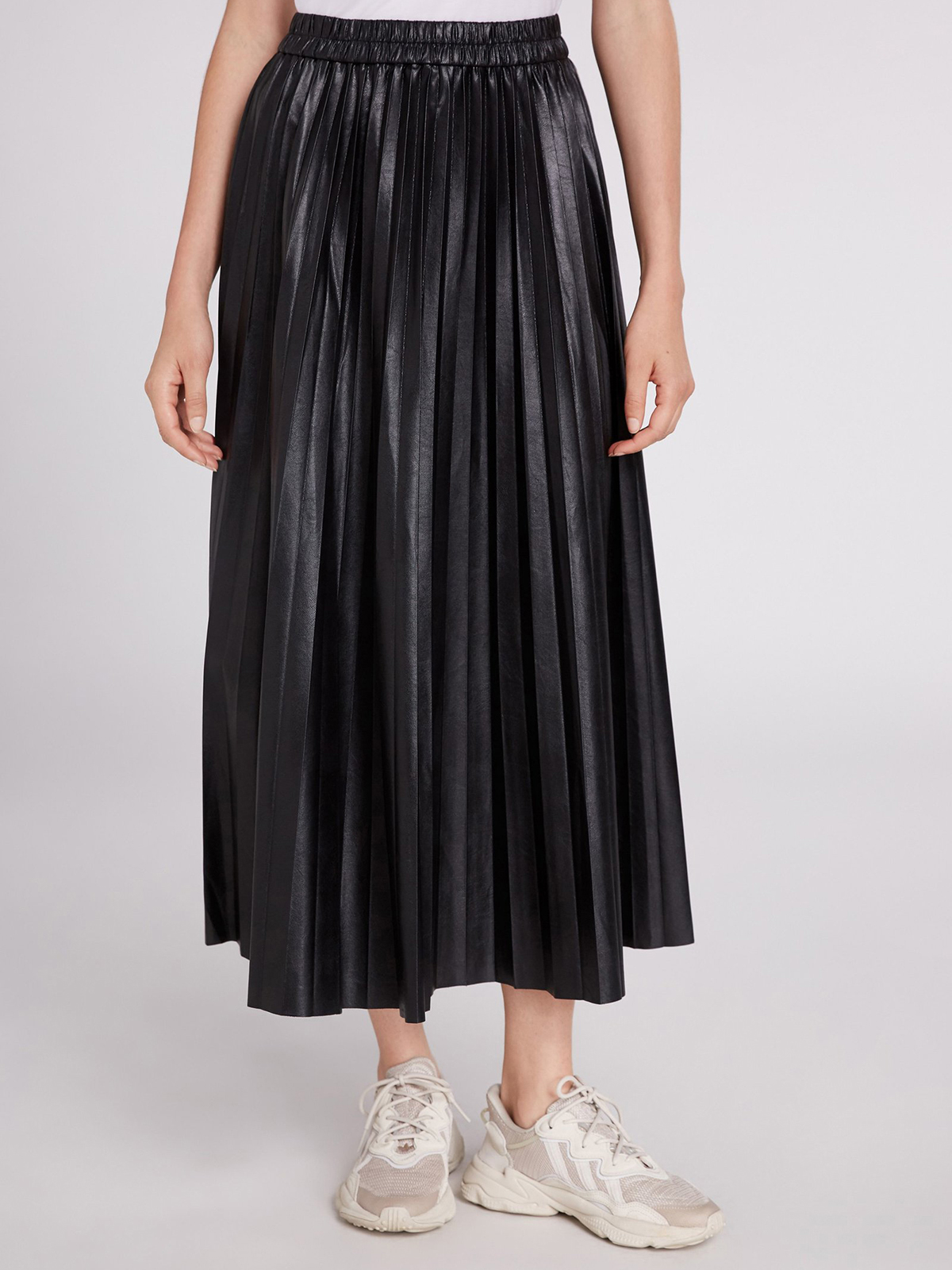 Плиссированная юбка из экокожи в актуально длине миди. Расклешенный A-силуэт. Эластичный пояс обеспечивает комфортную посадку по естественной линии талии. Длина 80 см для размера 42. Рост модели 178 см, ее размер – 42 (российский).