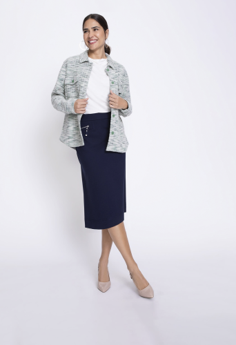 Модель прямой юбки, которая подойдет как для работы, так и для выходных. Эластичный пояс для удобства и два передних кармана на молнии контрастного цвета для дополнительного стиля. Удобная для растягивания конструкция обеспечивает комфорт в течение всего дня.