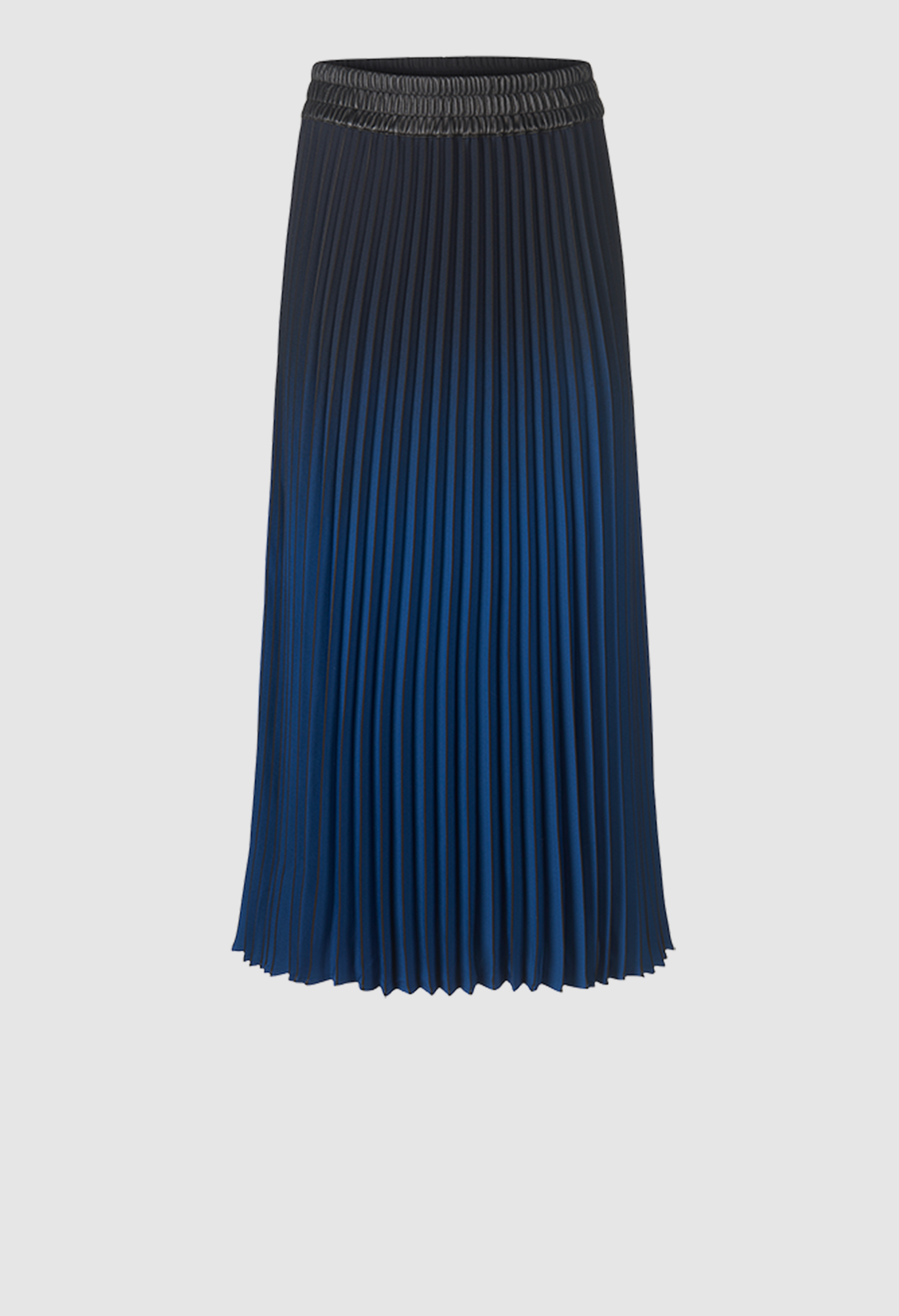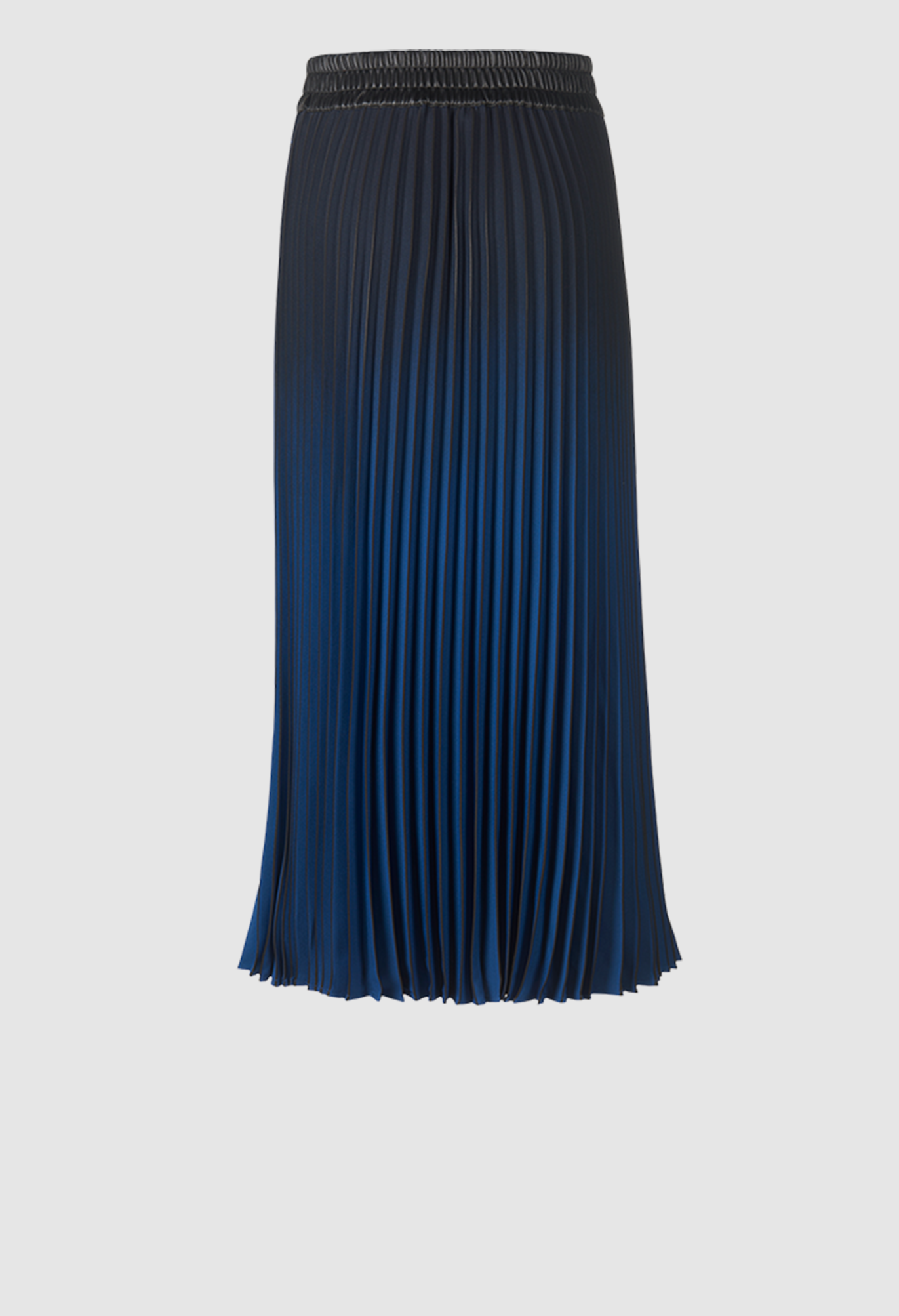 Юбка длиной до щиколотки подчеркивается складками, которые в сочетании с эффектом омбре создают чрезвычайно тонкую игру цветов.