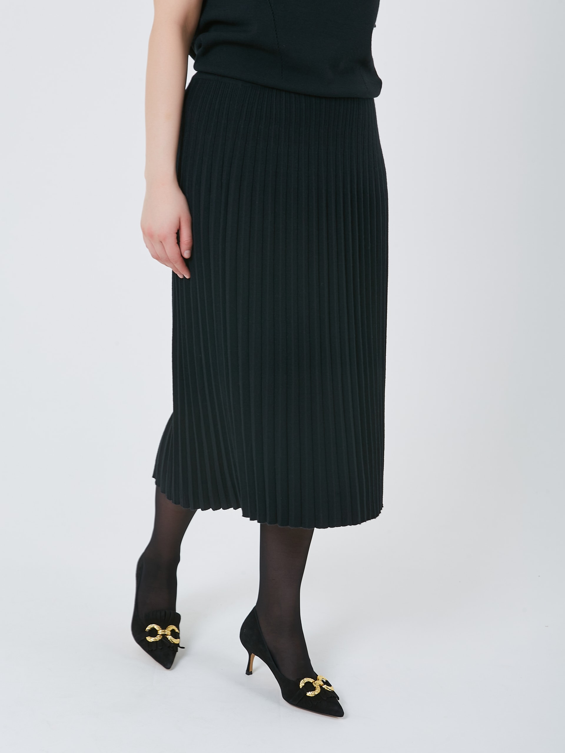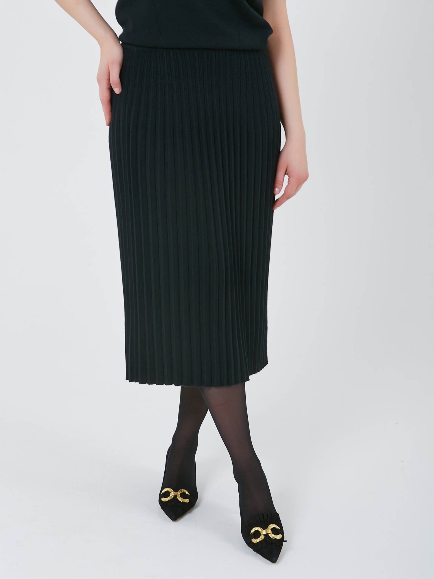 Шелковистая плиссированная юбка глубокого чёрного цвета. Зрительно вытягивает силуэт и отлично сочетается с любым стилем. Осень-Зима'25/26. Капсула "Малахитовая шкатулка"