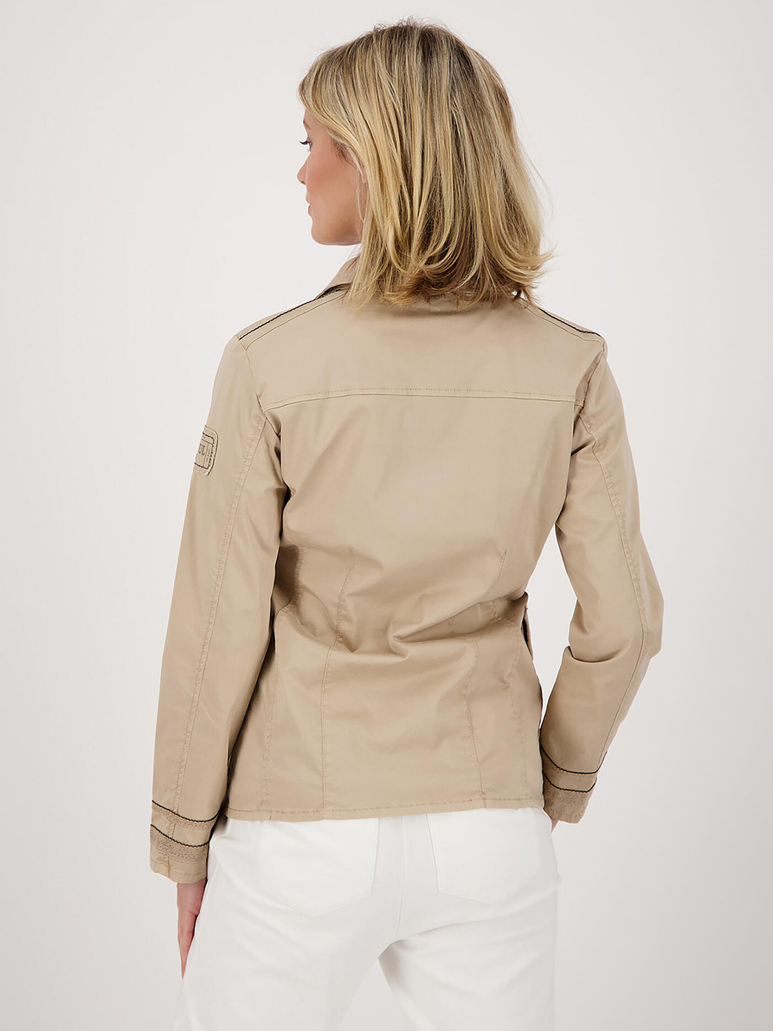 На сайте указаны Российские размеры. Однотонный жакет – универсальный элемент гардероба, подходит для повседневного, городского лука. Отложной рубашечный воротник, застежка на пуговицы. Четыре накладных кармана с клапаном.