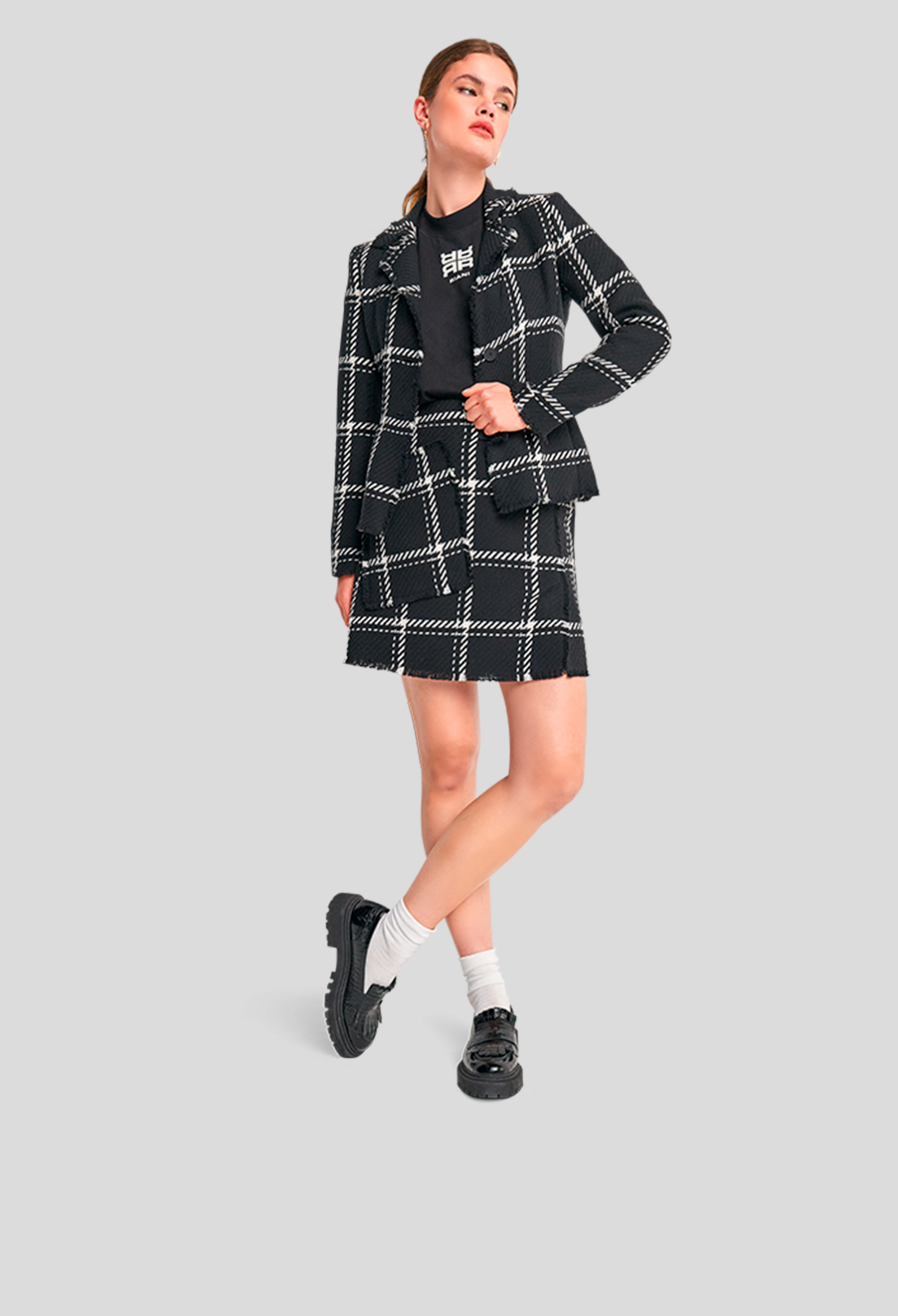 Приталенный узкий блейзер из хлопка-полиэстера с двумя пуговицами с вау-эффектом! Концы с бахромой делают ее особенной вещью, которую нельзя пропустить этой осенью.