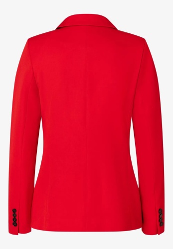 Женственный пиджак на двух пуговицах от MORE & MORE ярко-красного цвета создает современный деловой образ с соответствующими брюками. Но он также отлично сядет по фигуре в сочетании с повседневными джинсами или женственным шифоновым платьем. Воротник с лацканами, накладные карманы. Длина по размеру 42 = 62см