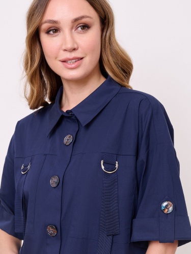 Укороченная блуза-жакет, застежка пуговицы, вырез горловины отложной воротничок, рукава короткие, карманы накладные, хлястики с металлическими пряжками. Длина по спинке: 51 см.