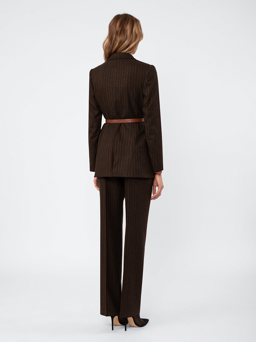 Жакет в стиле кэжуал, полуприлегающего силуэта, на подкладке. Застежка на пуговицы. Воротник английский. Рукав втачной. Карманы с клапаном. Ремень из экокожи с пряжкой.